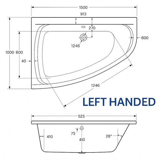 Aqua Cleo Corner Bath – 1500 x 1000mm Double-Ended Acrylic Bath (Left or Right-Hand Option)